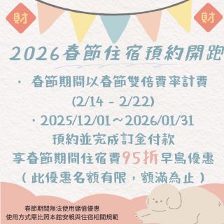2026春節早鳥住宿預約開跑囉!